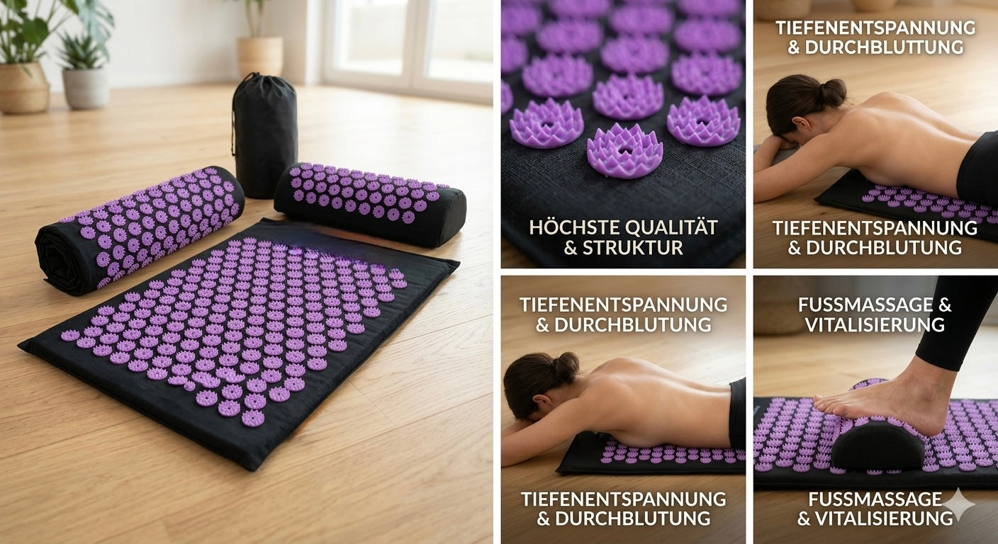 Unsere Akupunkturmatten schenken dir Entspannung und eine kleine Auszeit vom Alltag. Die sanften Lotusspikes können Verspannungen lösen und neue Energie freisetzen. In verschiedenen Farben passend zu deinem Stil – hinlegen, abschalten und zur Ruhe kommen. SoulRest steht für Balance und echte Me-Time.